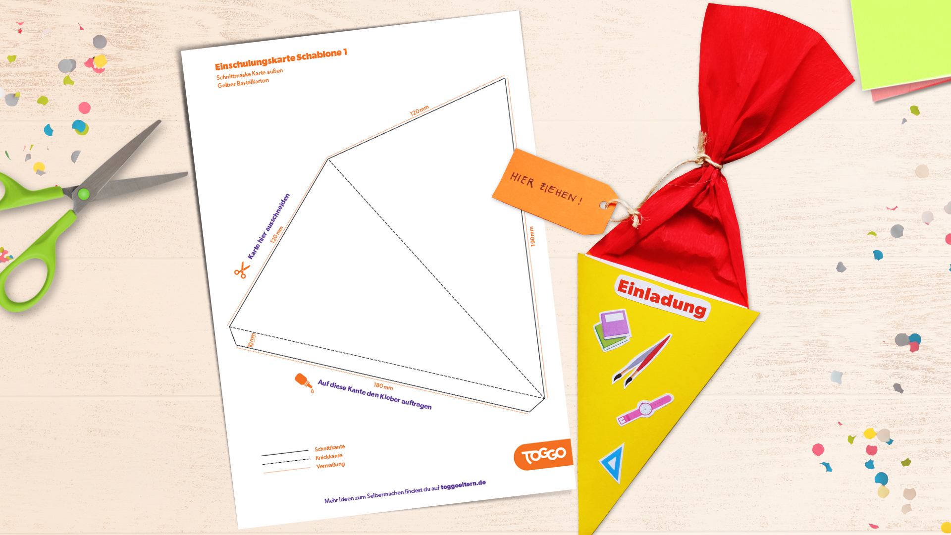 Endlich Schulkind! Das soll natürlich gefeiert werden. Wir zeigen euch eine einfache, aber dennoch schöne Einladungskarte, die perfekt zur Einschulung passt. Viel Spaß beim Nachbasteln!