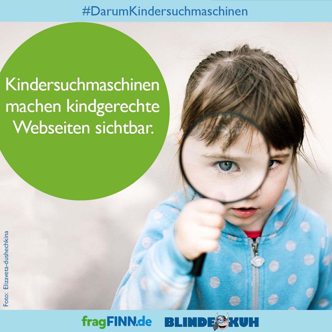 Für einen positiven Jugendmedienschutz: Blinde Kuh und fragFINN starten gemeinsame Kampagne #DarumKindersuchmaschinen für die Stärkung der Medienkompetenz, sicheres Surfen und Digitale Bildung.