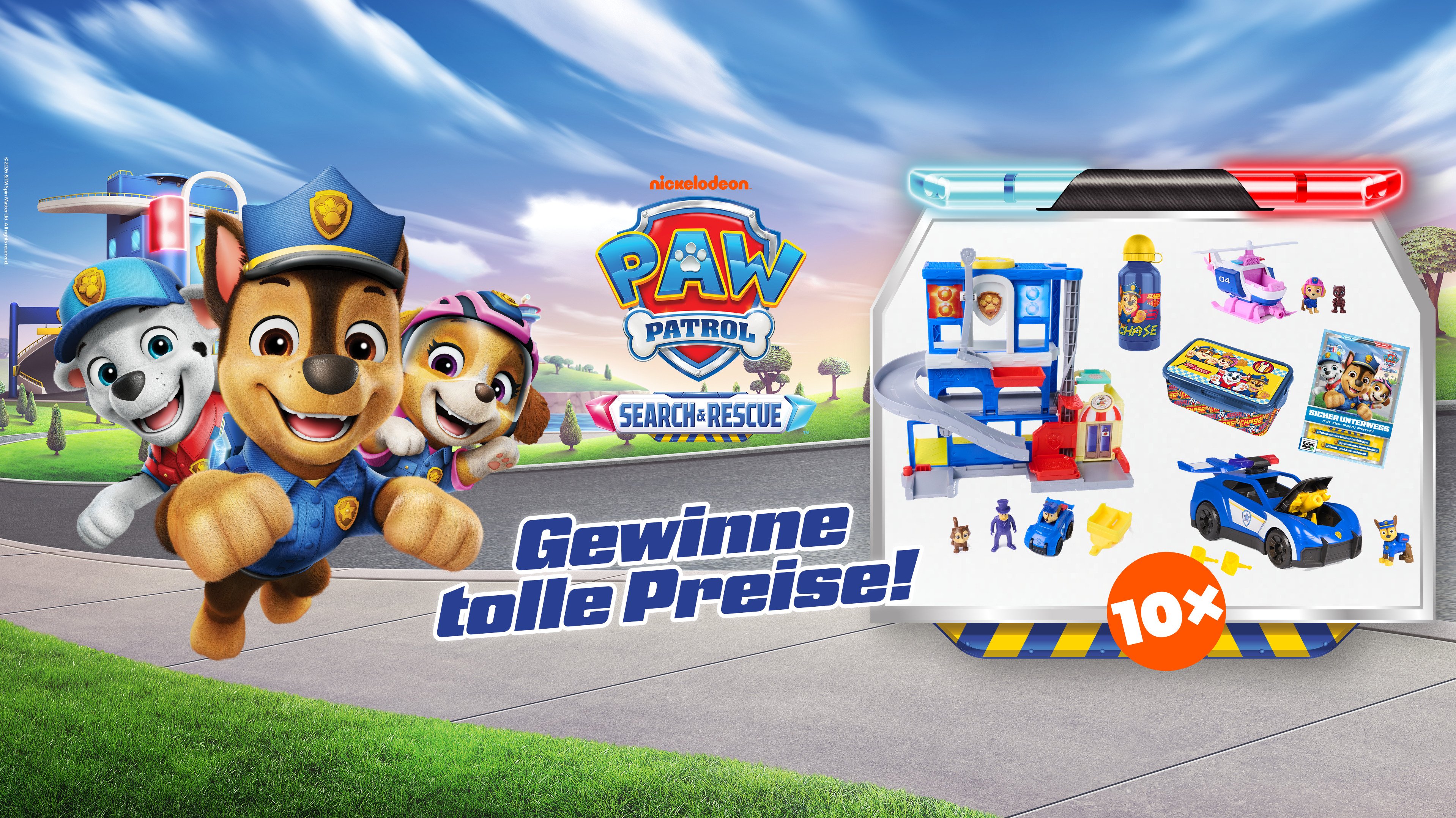 Macht mit bei unserem "PAW Patrol - Search & Rescue"-Gewinnspiel und gewinnt mit etwas Glück 1 von 10 Fanpaketen. Jedes Paket enthält heldenhafte Preise: Ein Deluxe Chase Cruiser Fahrzeug, ein Search & Rescue Hauptquartier Spielset, einen Skye Rettungs-Helikopter, eine Lunchbox, eine Trinkflasche und eine Straßenverkehrssicherheitsfibel! Wir wünschen euch viel Glück!