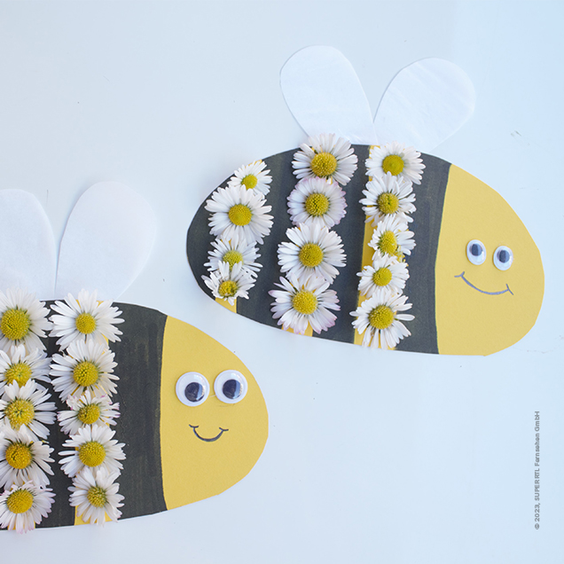 Lasst mit den süßen Blumen-Bienen den Frühling bei euch einziehen! Sie eignen sich super als Tischdeko oder als Fensterbild. Sammle zusammen mit deinen Kids die ersten Frühjahrsblüher und bastelt die Bienen nach. Dazu brauchst du nur haushaltsübliche Materialien.