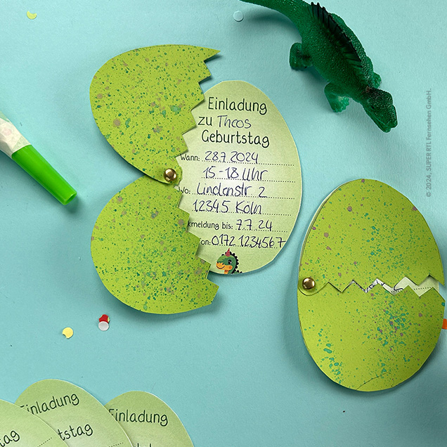 Plant die nächste Kinder-Geburtstagsparty im Dinosaurier-Stil und begeistert eure kleinen Gäste mit selbstgebastelten Dino-Ei Einladungskarten. Sie verwandeln jede Geburtstagseinladung in ein einzigartiges, prähistorisches Abenteuer und sind der perfekte Start für eine aufregende Dinoparty. Mit unseren einfachen Bastelanleitungen wird die Vorbereitung zum Spaß für die ganze Familie und die Motto-Party zu einem unvergesslichen Ereignis.