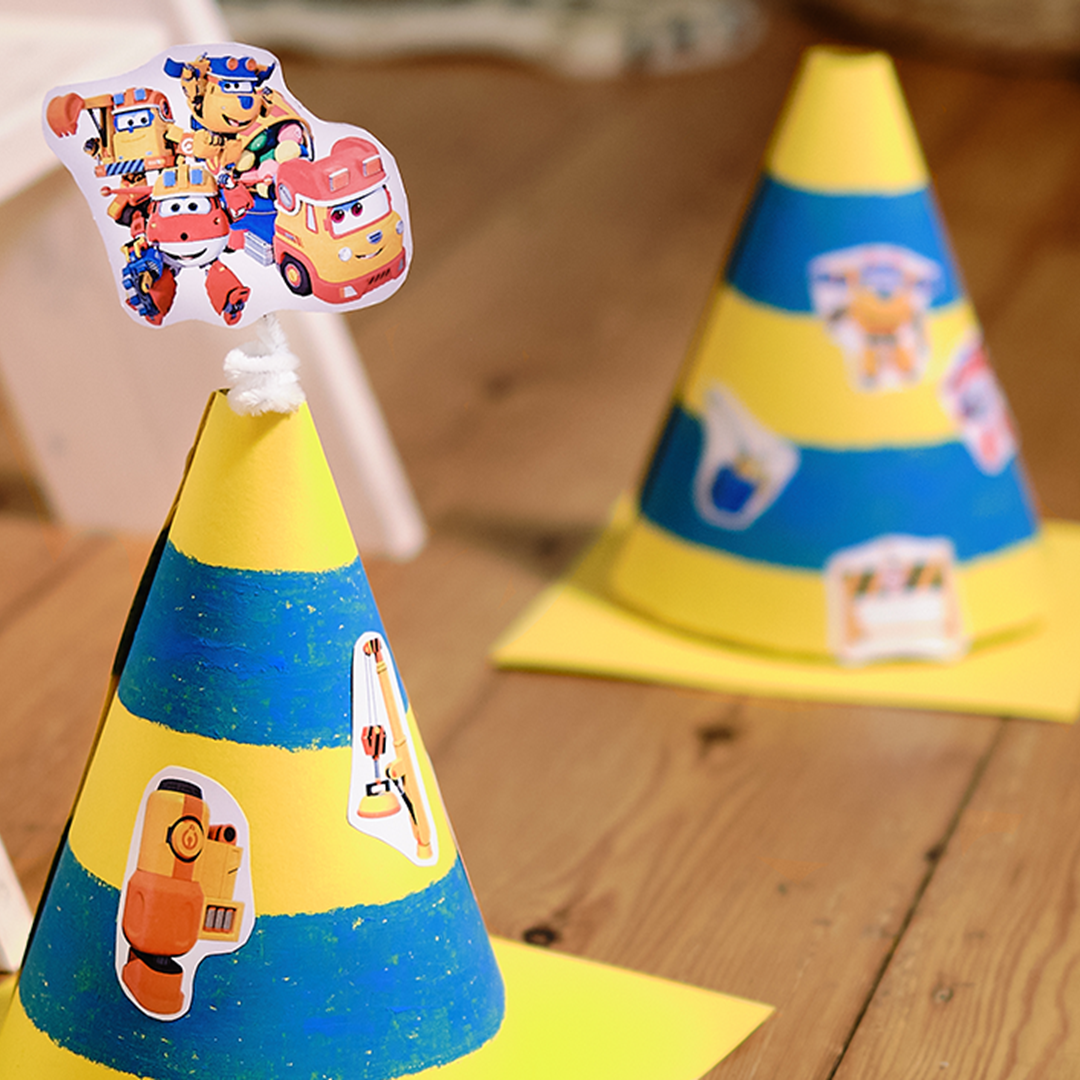 Pylonen sind praktisch, um Gefahrenbereiche zu markieren. Mit Donnies Pylone kannst du auch spielerisch Bereiche in deinem Kinderzimmer abstecken, um beispielsweise eine Bauecke zu markieren. Zur Verschönerung kannst du zusätzlich einen Super Wings Pfeifenputzer-Aufsatz basteln.