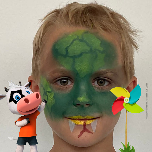 Achtung, alle in Deckung, da kommt ein Feuer spuckender Drache! Okay, Feuer spucken werden deine Kids hoffentlich noch nicht können, aber wie ein furchteinflößender Drache auszusehen ist schnell möglich – und mit den passenden Vorlagen auch gar nicht so schwierig! Also schnapp dir die passenden Schminkfarben und verwandel deine Kleinen in einen beeindruckenden Drachen!