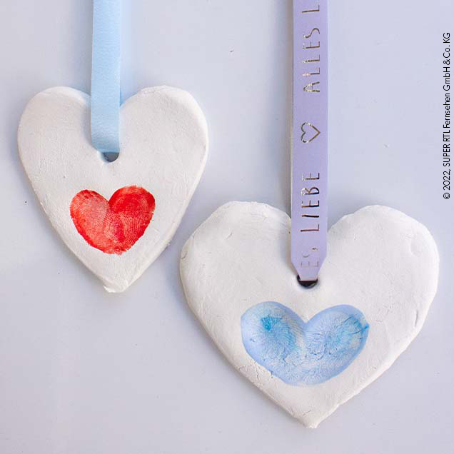 Ein persönliches Muttertags- oder Vatertagsgeschenk zu finden muss gar nicht schwer sein. Aus Ton lassen sich ganz einfach schöne Herzen ausstechen. Und was gibt es persönlicheres als den Fingerabdruck eurer Kleinen in Herzform?! So macht euren Kids nicht nur das Verschenken, sondern auch das Basteln besonders viel Spaß.