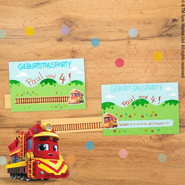 Deine Kleinen wollen zusammen mit Nick die Gäste für die Mighty Express Party einladen? Kein Problem! Wir zeigen euch wie ihr eine tolle Mighty Express Einladungskarte bastelt. Das besondere an der Karte: Unter Nicks beweglicher Zugstrecke könnt ihr eine Nachricht verstecken.
