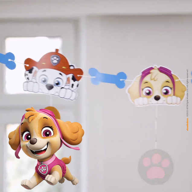 Ideal für die PAW Patrol Mottoparty zum Kindergeburtstag: Bunte Girlanden mit den Fellfreunden und witzigen Knochen und Pfoten dazwischen. Wie lang die Girlande wird, ist euch überlassen. Einfach mehrmals basteln, denn: Kein Einsatz zu groß, keine Pfote zu klein!