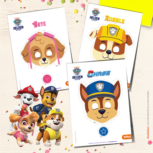 Eure Kleinen träumen davon, in die Fußstapfen ihrer Helden zu treten? Dann aufgepasst: Mit diesen heldenhaften Masken wird ihr Traum wahr! Einfach die Vorlage ausdrucken, mit einem Gummiband befestigen und schon kann die Welt als Chase, Marschall, Rubble oder Skye gerettet werden.