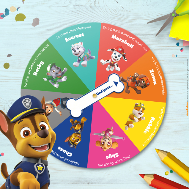 Dieser Klassiker darf auf keiner Party fehlen - und macht mit den Fellfreunden sogar noch mehr Spaß! Auf der Drehscheibe geben die Helfer auf vier Pfoten lustige Tanzideen vor, die alle kleinen PAW Patrol-Fans dann nachtanzen können - bis die Musik stoppt! Wer kann vor lauter Lachen nicht stillhalten und wer hält den Tanz mit der PAW Patrol am längsten durch?