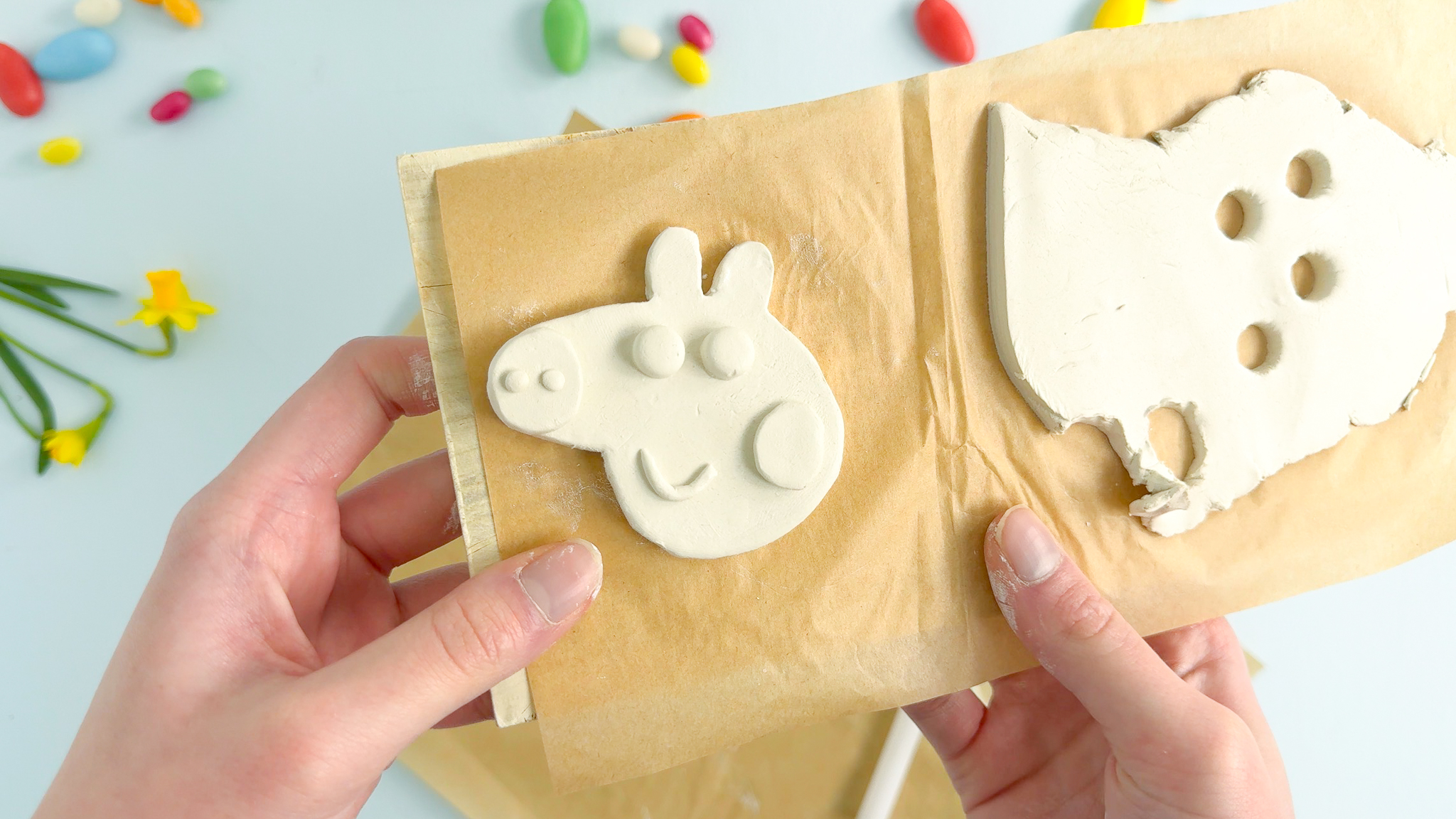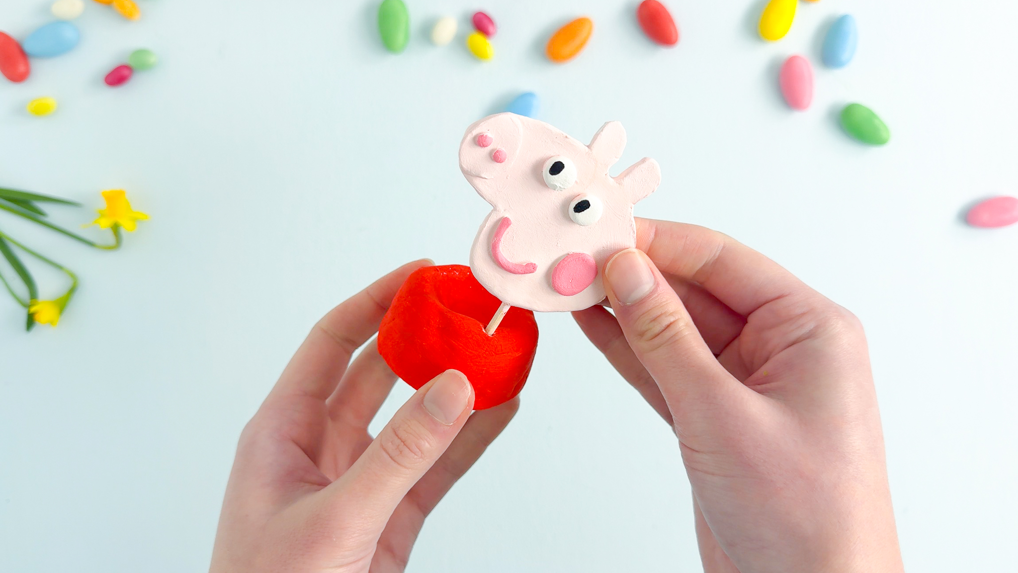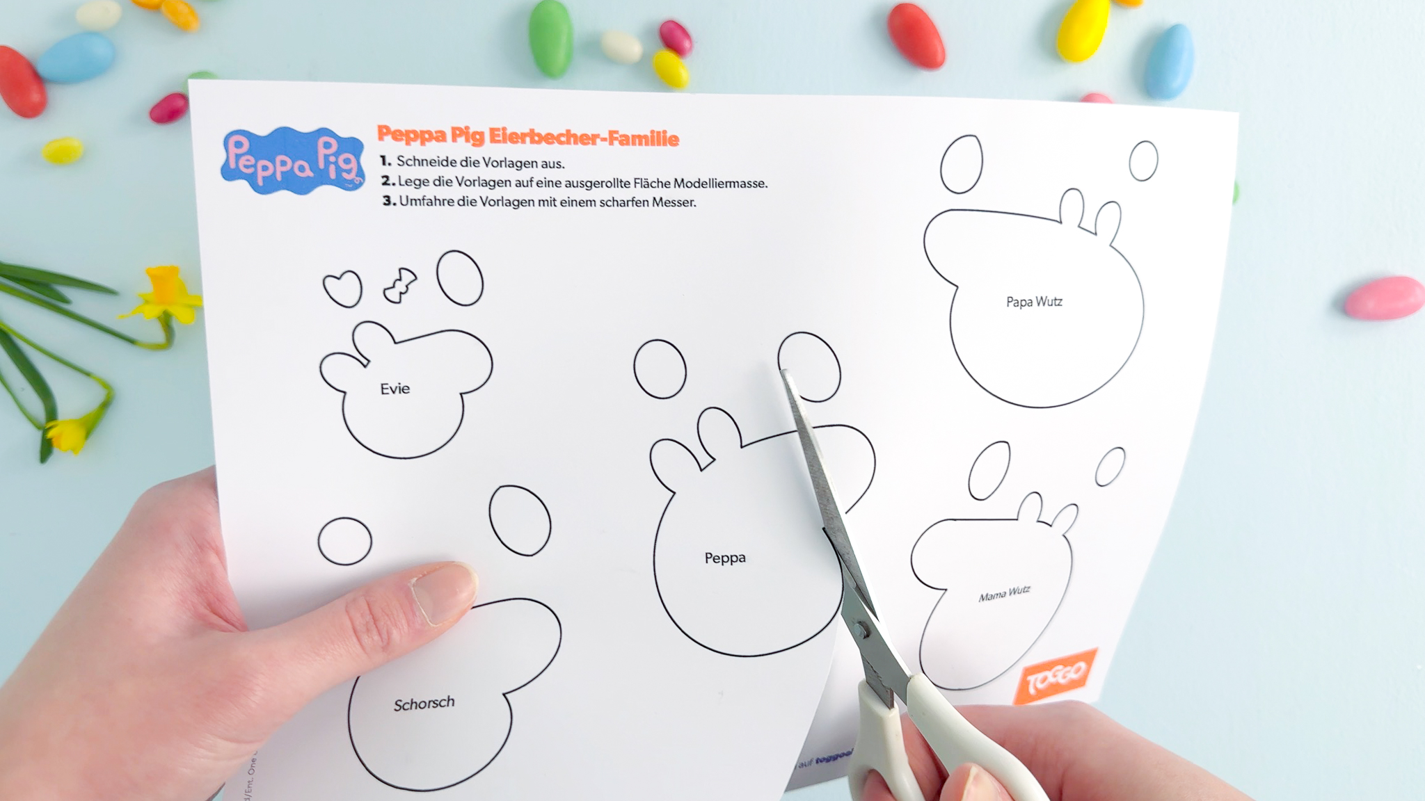 Ostern ist die perfekte Zeit für kreative Familienmomente. Diese hochwertige Bastelei aus Modelliermasse ist nicht nur eine langlebige und stabile Osterdeko, sondern sorgt auch über die Feiertage hinaus für Freude am Frühstückstisch. Kleine Peppa-Fans freuen sich über einen liebevoll gestalteten Eierbecher mit ihrer Serien-Freundin und dank der Vorlagen der ganzen Familie Wutz bekommt bei euch zu Hause jedes Familienmitglied einen eigenen Becher.