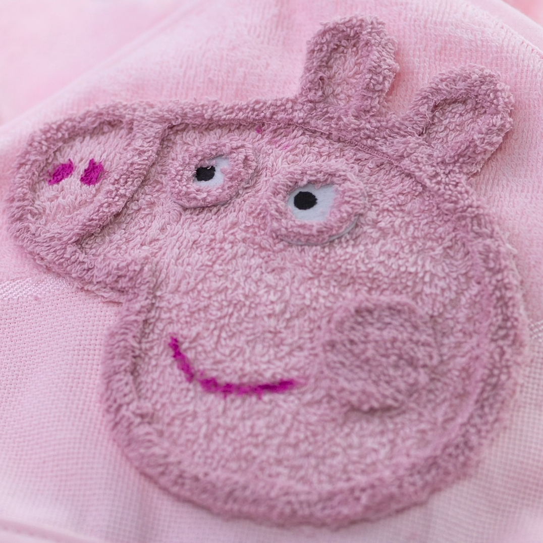 Kapuzenhandtücher sind sehr praktisch für Kleinkinder. Man kann sie einfach nach dem Bad kuschelig darin einwickeln oder auch für das Schwimmbad nutzen. Doch wenn sich auf der Kapuze nun eine Peppa mit beweglichen Ohren bef indet und man mit einem Ringelschwänzchen gleich selbst ein wenig zur Peppa wird, wird es nicht nur praktisch, sondern auch spaßig.