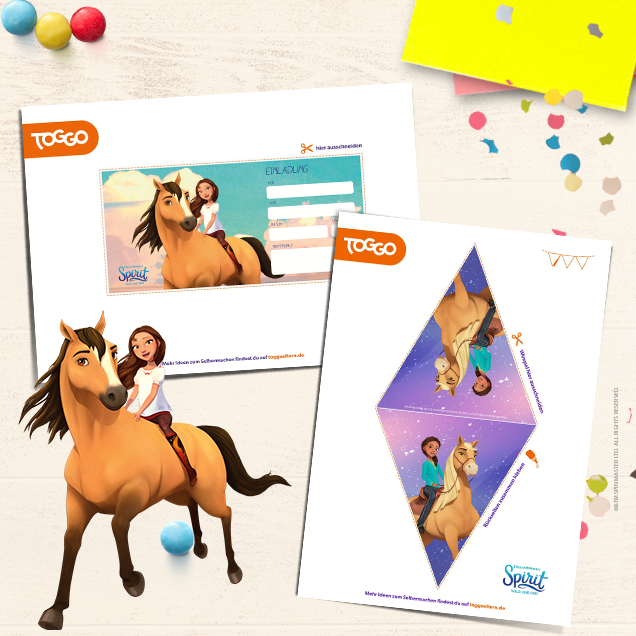 Pferde sind die Lieblingstiere deiner Kinder? 🐎 Der nächste Geburtstag soll daher auch eine Pferde-Motto-Party werden? Kein Problem, wir haben einfache Deko-Ideen zum Nachmachen wie die kunterbunte Spirit Wimpelkette, süße Einladungskarten und Spirit Ausschneidefiguren. Viel Spaß beim Feiern!