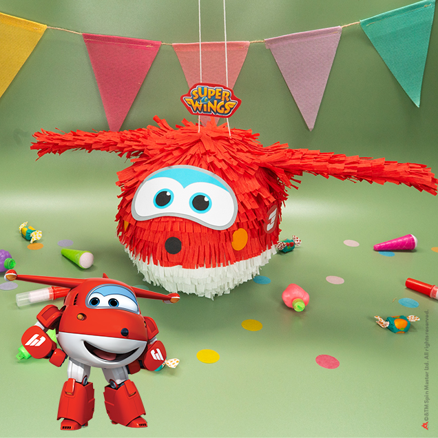 Eine Piñata ist das Highlight eines Kindergeburtstages. Besonders toll ist es, wenn sie aussieht wie Jett, der Held deines kleinen Super Wings Fans. Bevor die fliegende Super Wings Piñata zerschlagen wird und es Süßigkeiten regnet, eignet sich die selbstgebastelte Piñata auch super als Deko für die Motto Geburtstagsparty.