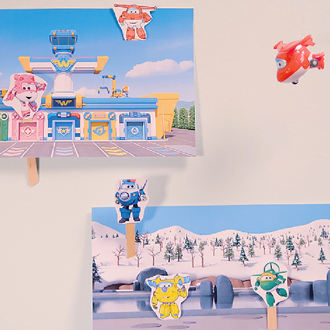 Die Spielwelt zeigt nicht nur Originalschauplätze der Super Wings, sie sieht auch großartig aus. Und wem das noch nicht reicht, der bastelt einen eigenen Hintergrund. Du kannst deine Lieblingsabenteuer nachspielen oder einfach ganz neue Geschichten ausdenken. Deiner Fantasie sind keine Grenzen gesetzt.