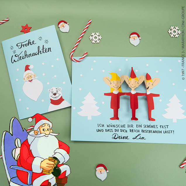 Die drei Elfen Trixi, Jordi und Gilfi springen dir in unserer tollen Weihnachtsmann und Co. KG Karte förmlich entgegen! Mit unserer Anleitung schaffst du es nämlich, selbst eine richtig beeindruckende Pop-up-Karte zu basteln. Viel Bastelerfahrung ist dafür gar nicht nötig, denn mit unseren Vorlagen geht das Ganze kinderleicht! Und wer weiß, vielleicht helfen dir die Elfen dafür sogar bei der Geschenkeproduktion für Weihnachten!