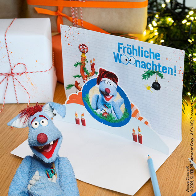 Bei Woozle ist nichts normal. Jetzt hat er eine 3D-Weihnachtskarte erfunden, auf der du woozelige Weihnachtsgrüße an deine Liebsten versenden kannst. Die praktische Vorlage, die das Basteln kinderleicht macht, kannst du hier runterladen und dann sofort loslegen!