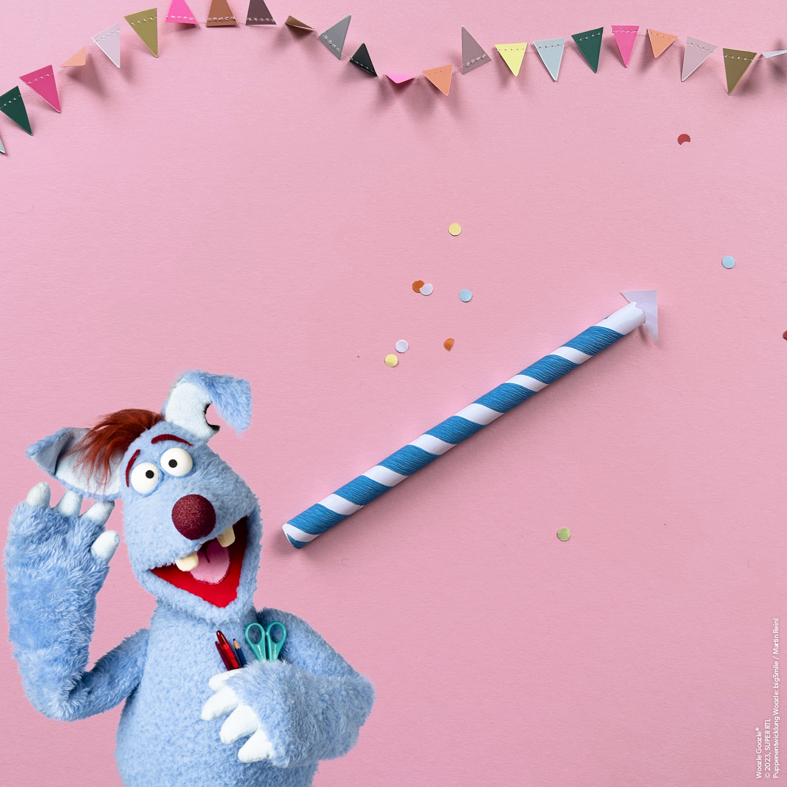 Wo Woozle ist, da ist es laut! Doch nicht nur im TV macht es BOOM, BÄMM und TRÖÖÖÖT. Jetzt wird auch der nächste Kindergeburtstag noch blauer, lauter und woozliger! Die Woozle Party-Tröte kannst du gemeinsam mit deinem Geburtstagskind und den Partygästen basteln und so zum Gastgeber des weltbesten Tröten-Konzerts werden. Versucht doch mal "Happy Birthday to you" zu tröten! Viel Spaß!