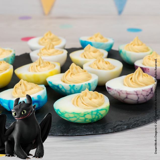 Bei einer richtigen Halloween-Party dürfen natürlich auch gruselige Snacks nicht fehlen 👻✨. Mit den Dragons Drachen-Eiern entsteht ein bunter Hingucker, der gesund, kreativ und richtig lecker ist. Die gefärbten Eier mit cremiger Füllung sehen aus wie echte Drachen-Schätze und bringen magische Stimmung auf den Partytisch 🐉🥚. Ein Snack, der Kinderaugen zum Leuchten bringt – lasst die Drachen-Eier schlüpfen! 🌈💥