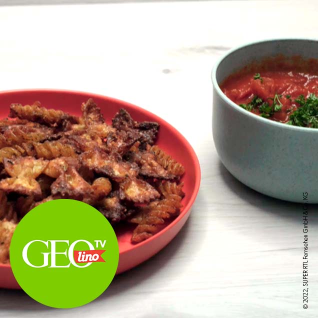 Gesunde Chips? Das geht!! Wir zeigen dir, wie du aus Pasta Chips machst und dazu noch eine leckere Salsa zum Dippen zauberst. Ein super leckerer Snack für die ganze Familie - der auch noch ganz nebenbei die Pasta-Reste vom Vortag verschwinden lässt.
