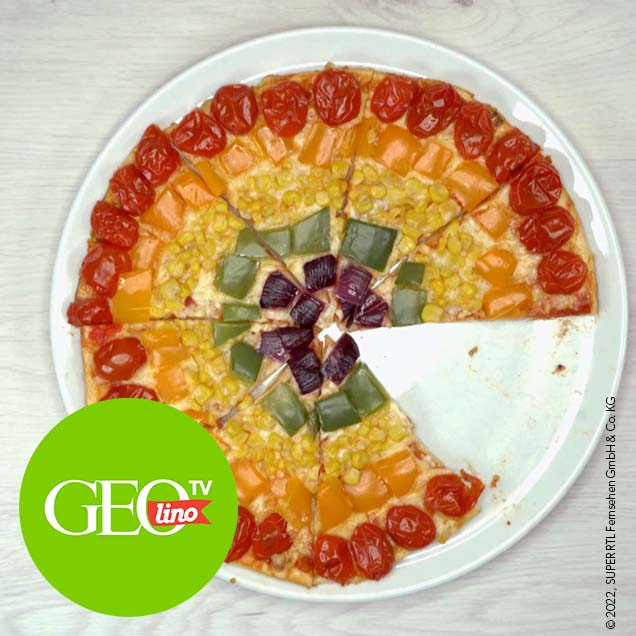 Das Auge isst bekanntlich mit. Die Regenbogen-Pizza von GEOLINO TV sieht nicht nur schmackhaft aus, durch ihren gesunden Belag liefert sie auch viele wichtige Nährstoffe. Da macht das Essen doch gleich doppelt Spaß! Hier findest du das super einfache und schnelle Rezept - ganz ohne Ruhezeit für den Pizzateig!