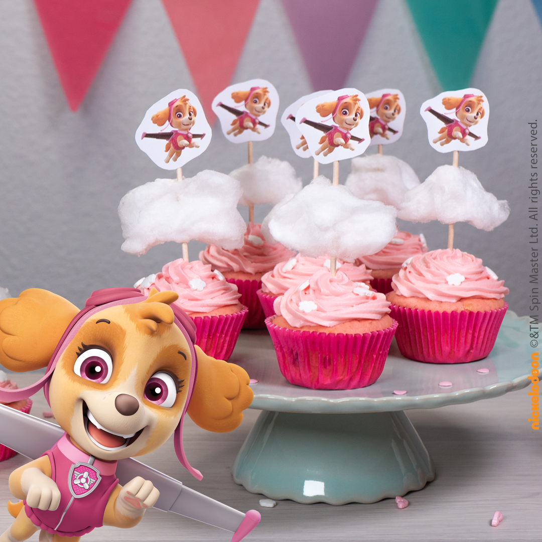 „Ja, ich bin der Flughund!“ - Mit diesen schönen Cupcakes können alle kleinen Fans von Skye mit ihr über den Wolken fliegen. Dafür braucht ihr neben unseren Vorlagen nur etwas rosa Zuckerwatte, aus der ihr schöne kleine Wölkchen formt. Himmlisch lecker und ein echter Hingucker für jeden PAW Patrol-Kindergeburtstag!