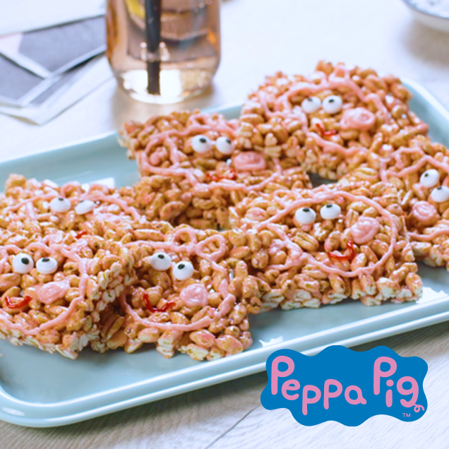 Kuchen und Muffins kann ja jeder! Diese knusprigen Peppa Pig Crispies sind eine wunderbare Nasch-Alternative für Groß und Klein. Und das Beste: Sie sind super schnell zubereitet.