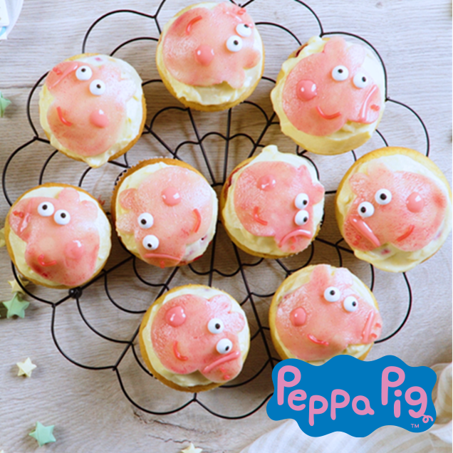 Peppa Pig Muffins machen Spaß beim Backen und Naschen! Wir zaubern leckere Himbeermuffins mit leckerem Frischkäse-Häubchen und lustigen Peppa Pig Gesichtern aus Marzipan. Perfekt für kleine Kinderhände und große Kinderaugen!