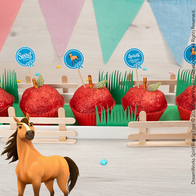 Spirit Lieblingsessen, Miradero Äpfel, sollte auf keiner Spirit Motto-Geburtstagsfeier fehlen. Die Apfel-Cupcakes sehen nicht nur toll aus, sie sind auch total lecker.