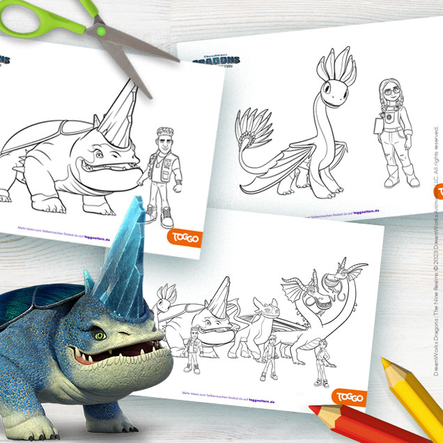 Drachen-Fans aufgepasst! Für deine kleinen Drachenreiter findest du hier Ausmalbilder der Serie Dragons - Die 9 Welten. Donner, Feder, Rammhorn und ihre Freunde freuen sich schon darauf als bunte Kunstwerke das Kinderzimmer zu schmücken. Einfach die Ausmalbilder runterladen, ausdrucken und drauf los malen!