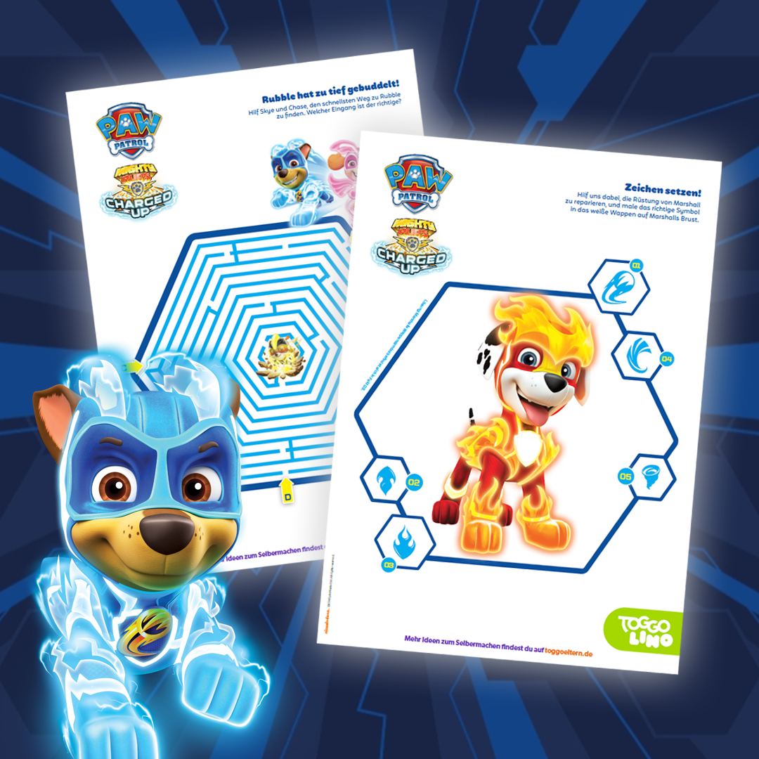 In den neuen "Mighty Pups - Charged Up" Abenteuern bekommt die PAW Patrol noch stärkere Superkräfte als je zuvor! Passend zu den neuen Folgen auf Toggolino gibt es hier zwei tolle neue Rätsel für eure Kleinen - können sie den Super-Hunden helfen und mit vereinten Pfotenkräften die Rätsel lösen?
