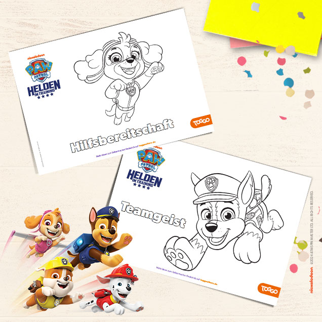 PAW Patrols Helden im Training mit neuen Ausmalbildern: Eure Kleinen können sich Buntstifte in ihren Lieblingsfarben schnappen und die Welpen von der PAW Patrol nach Lust und Laune bunt anmalen. Einfach Vorlagen ausdrucken und los geht's. Der Kreativität sind dabei keine Grenzen gesetzt.