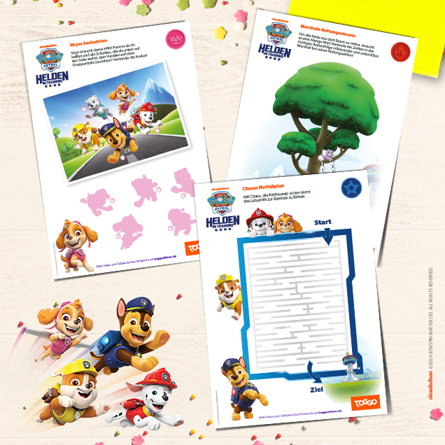 PAW Patrols Helden im Training mit neuen, spannenden Rätseln: Jetzt können eure Kleinen Seite an Seite mit den Helfern auf vier Pfoten ihre besondere Stärke entwickeln. Durch die Rätsel wird deinen kleinen Helden kindgerecht vermittelt, was es heißt ein echter Teamplayer wie Chase zu sein oder anderen eine Freude zu machen, wie Rubble es am liebsten tut. Marshall und Skye sind mit Mut und Hilfsbereitschaft natürlich auch dabei! Was sind die Stärken deiner Kinder?