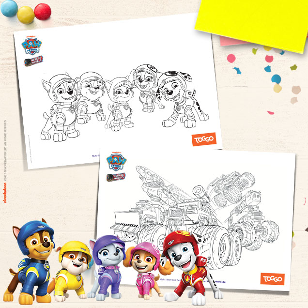 Die Rescue Wheels sind wieder im Einsatz. Sie sind auf der Suche nach ihren Farben. Können deine Kinder der PAW Patrol helfen? Einfach die pfotenstarken Ausmalbilder runterladen und ausdrucken. Dann kann die neue Mission losgehen!