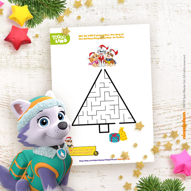 Was für eine schöne Bescherung! Es ist Weihnachten, doch Skye, Marshall und Rubble finden den Weg zu ihren Geschenken nicht mehr. Können eure Kinder den Fellfreunden den Weg durchs Weihnachtslabyrinth zeigen?