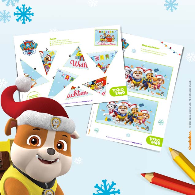 Die Helfer auf vier Pfoten brauchen die Hilfe eurer Kinder. Damit an den Weihnachtsfeiertagen keine Langeweile aufkommt, haben wir für eure Kinder zwei knifflige Rätsel vorbereitet. Schaffen sie es, das PAW Patrol Weihnachtspuzzle zusammenzufügen und alle fünf Unterschiede zwischen den beiden Weihnachtsbildern der Fellfreunde zu finden? Wir wünschen viel Spaß beim Knobeln!
