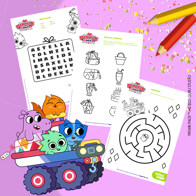 Die Pikwik Post begibt sich jeden Tag auf abenteuerliche Herausforderungen, um Päckchen an ihre Freunde auszuliefern. Jetzt gibt es auch für Zuhause spannende und altersgerechte Rätsel. Deine Kleinen können versuchen Objekte richtig zu verbinden, durch Labyrinthe zu finden und einfache Wörter in Worträtseln zu suchen.