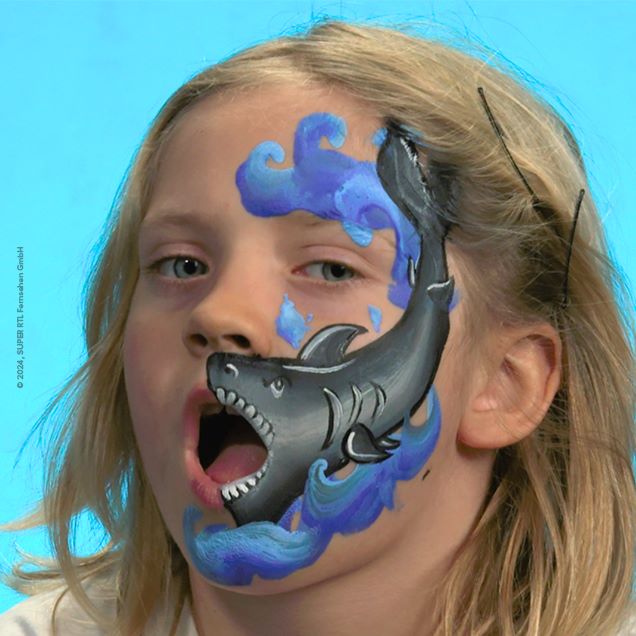 Tief Luft holen und abtauchen! Mit Hilfe dieser Schminkanleitung verwandelst du deine Kids in einen coolen Hai, den furchtlosen Jäger der Meere. Ganz besonders beeindruckend an dieser Schmink-Idee: Wenn deine Kinder ihren Mund öffnen, zeigt auch der aufgeschminkte Hai seine scharfen Zähne.