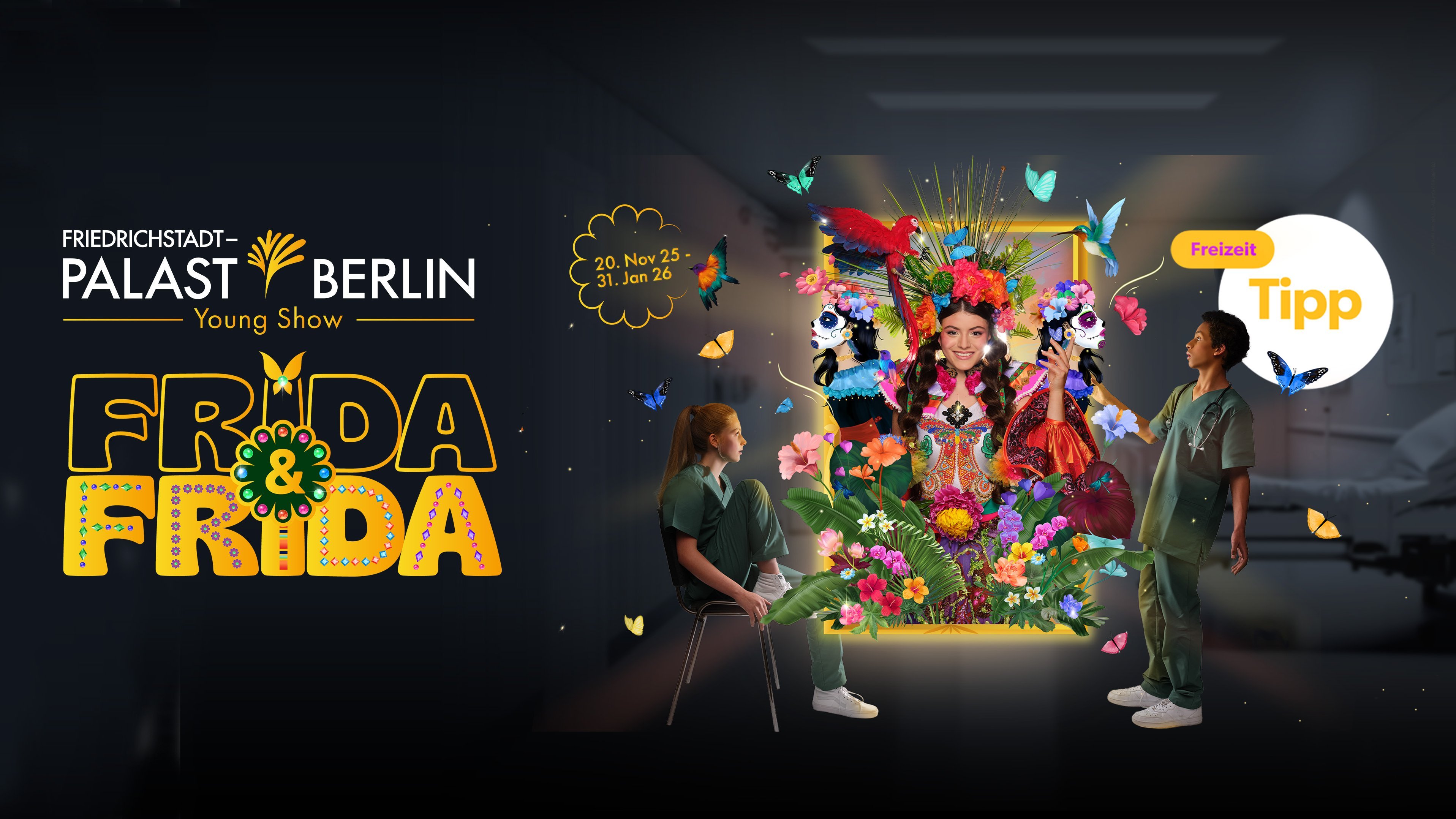 Die Young Show "Frida & Frida" kehrt zurück und ist ab November auf der Palast-Bühne zu bestaunen – mit mexikanischem Flair, farbenprächtiger Inszenierung und mitreißenden Motiven! Nur vom 20. November bis 31. Januar könnt ihr die Young Show von Kindern für Kinder (ab 5 Jahren) im Friedrichstadt-Palast Berlin sehen.